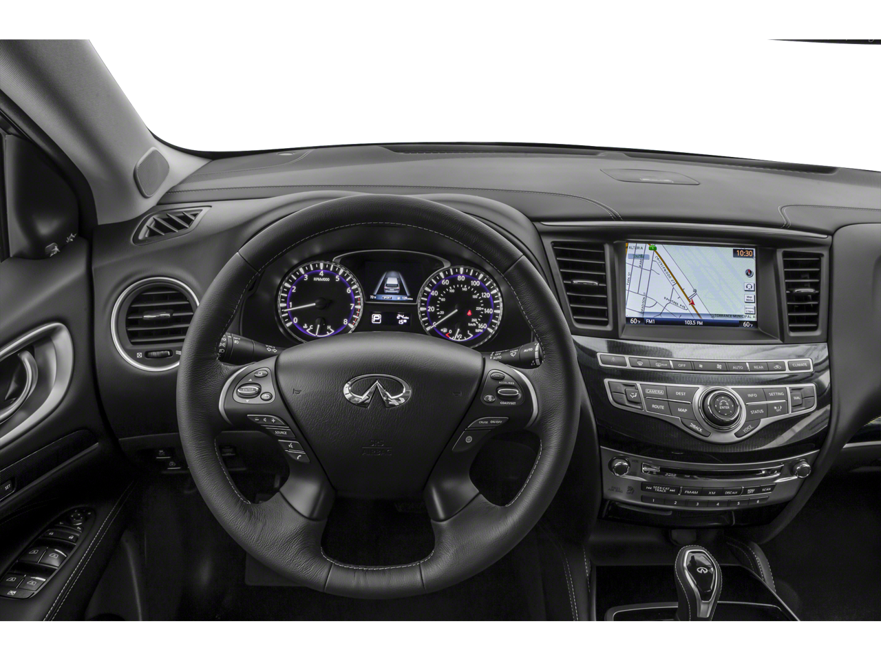 - Essential Package: Enjoy the convenience of Front & Rear Sonar Sensors, Around View Monitor with Moving Object Detection, Rain-Sensing Wipers, and the advanced INFINITI InTouch Navigation and Services.