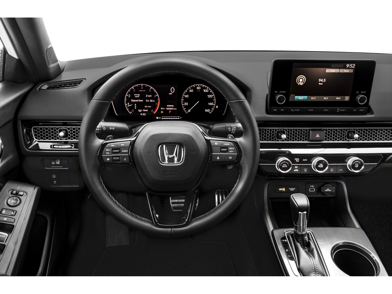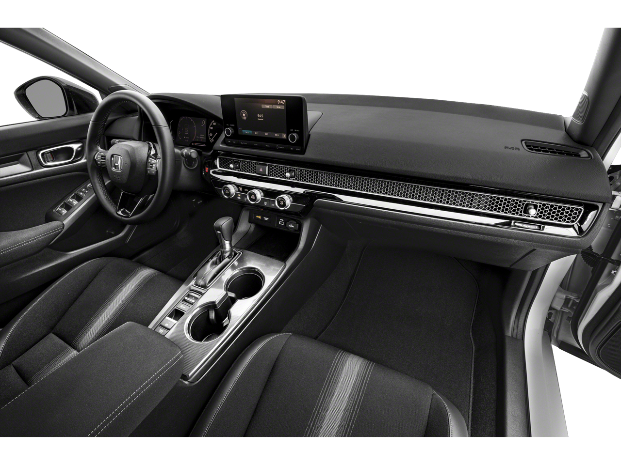 Step inside the Civic Sport and discover a cabin that seamlessly blends style and functionality. The cloth-upholstered seats provide comfort and support, while the leather-wrapped steering wheel and shift knob lend a premium touch. Connectivity is at your fingertips with features like Apple CarPlay, Android Auto, and the 180-Watt audio system with 8 speakers.